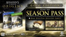 Zusätzlich wurden die Deluxe und Gold Edition von Assassin’s Creed Origins angekündigt. Mit der Deluxe Edition erhalten Spieler das Basisspiel, eine gedruckte Version der handgemalten Weltkarte zum Spiel, den offiziellen Soundtrack und das digitale Deluxe-Paket, einschließlich der Mission „Hinterhalt auf See“, das Wüstenkobra-Paket und drei Bonus-Fähigkeitspunkte. Die Gold Edition bietet alle digitalen Inhalte der Deluxe Edition und zusätzlich den Season Pass. Der Season Pass wird Spielern den Zugang zu allen anstehenden großen Erweiterungen und Ausrüstungssets gewähren. Die Deluxe- und die Gold Edition wird u.a. auch in den Digital-Stores erhältlich sein. Weitere Informationen hierzu finden Sie unter: http://store.ubi.com/assassin-s-creed-origins
