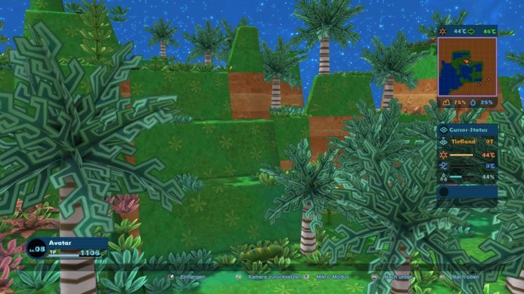 Und genau nach diesem Prinzip läuft das Spiel dann eine ganze Weile ab, viel Variation im Spielprinzip gibt es leider nicht. Statt einer interessanten Story wird Birthdays the Beginning dabei lediglich von den verschiedenen Missionen getragen, die in verschiedene Kapitel unterteilt sind. Nach dem Abschluss eines Kapitels vergrößert sich der Würfel stets um ein gutes Stück, sodass die entstehende Welt Platz für zusätzliche Flora und Fauna bietet. Birthdays the Beginning ist zwar thematisch unglaublich interessant, wird spielerisch aber leider sehr früh ziemlich repetitiv. Teilweise kann das Spiel sogar sehr frustrierend sein, weil einige Gegebenheiten im Spiel nicht ganz transparent vermittelt werden. Genauso kann man sich seine Welt leider sehr leicht selbst zunichte machen, was entweder lästige Arbeit oder das Laden eines früheren Speicherstands zur Folge hat. Doch selbst das ist lästig, da Birthdays the Beginning über kein automatisches Speichersystem verfügt.