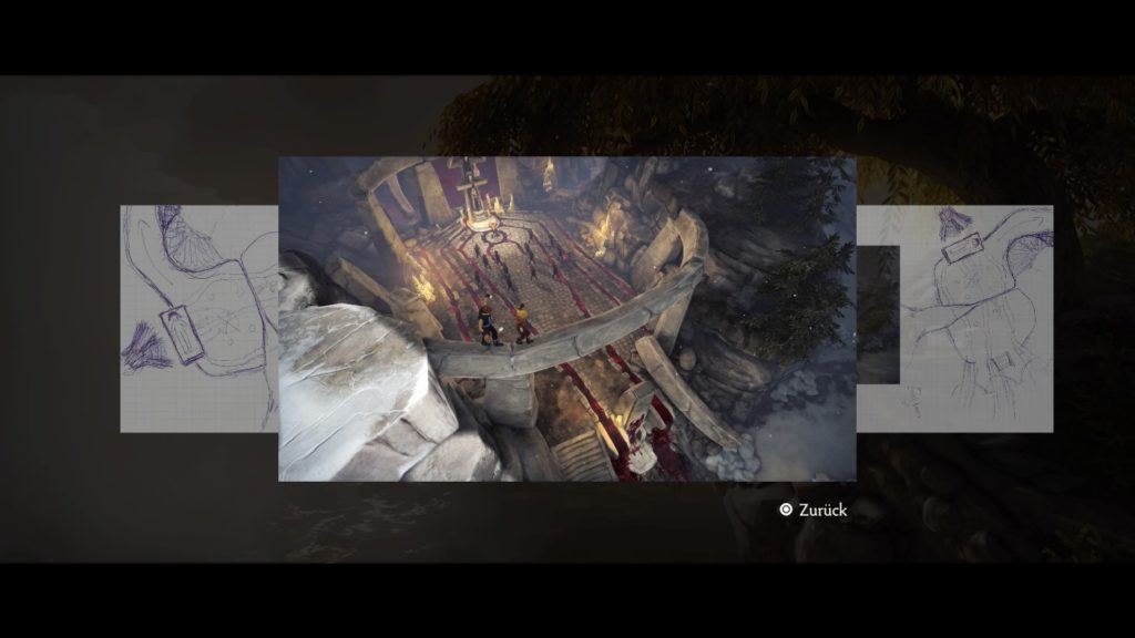 Mit einer Spielzeit von rund drei Stunden ist Brothers: A Tale of Two Sons kein besonders umfangreiches Spiel. Es gibt zwar Nebenaufgaben, doch sind diese zumeist durch einfache Interaktion unterwegs zu erledigen. Brothers gestaltet sich relativ linear und bietet nicht allzu viel Wiederspielwert. Neuen spielbaren Inhalt gibt es auch auf der PS4 nicht, doch die Neuveröffentlichung kommt dennoch mit einigen Extras daher. Allen voran habe ich mich über einen Videokommentar gefreut. Hier wird ein Spieldurchgang gezeigt, nicht selbst gespielt, während ein Entwickler über die Entstehung von Brothers spricht. In diesem Video kommen interessante Informationen ans Licht. Der Director musste aus Geldnot beispielsweise das Motion Capturing der Figuren selbst übernehmen. Es lohnt sich, den Videokommentar anzuschauen! Ebenso neu mit dabei ist eine Galerie, die Konzeptbilder des Spiels zeigt. Mir hat die optische Darstellung gut gefallen, weshalb es interessant war, die Entstehung des visuellen Stils zu sehen. Brothers hat sowohl helle, farbenfrohe Umgebungen als auch düstere Areale. Das Spiel läuft nun mit aufpolierter Auflösung und Framerate, optisch hat sich sonst jedoch nicht viel getan. Da Brothers auch schon auf der PS3 hübsch anzusehen war, ist dies aber kaum ein Problem. Der Soundtrack des Spiels weiß absolut zu gefallen. Die Klänge passen stets zur Stimmung, die das Spiel vermittelt und tragen zur Atmosphäre bei. Die PS4-Fassung gibt uns die Möglichkeit, den Soundtrack anzuhören, was einmal mehr ein tolles Extra darstellt.