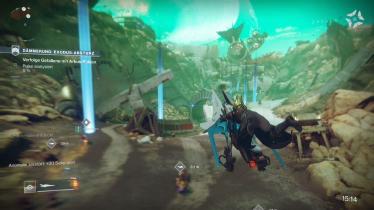 Dennoch haben mich einige Kleinigkeiten an der Geschichte gestört. Da wäre zum einen der kitschige “Wir denken uns eine Handlung aus, bei der Spieler zu Beginn ihrer Kräfte beraubt werden”-Einstieg. Es hat unterm Strich ganz gut funktioniert, Spielern erst schrittweise wieder alle Funktionen zur Verfügung zu stellen. Dennoch wirkte die Geschichte für mich in dieser Hinsicht etwas zu konstruiert. Zum anderen hat mich Ghaul als grundlegender Feind nur bedingt überzeugt. Er wird recht eindimensional präsentiert, was heutzutage kaum noch ein gutes Feindbild zur Folge hat. Auch hat mich irritiert, dass der gespielte Hüter in der Story stumm ist – obwohl im ersten Teil das Gegenteil der Fall war. Immerhin kann der Geist, unser kleiner, schwebender Begleiter, mit seinen pfiffigen Sprüchen gut unterhalten. Allen voran im englischen Original liefert Nathan Drake-Sprecher Nolan North einen tollen Job ab, doch auch die deutsche Stimme ist gut gewählt. Die Story-Komponente hinterlässt insgesamt einen guten Eindruck. Destiny-Fans werden sich jedoch darüber freuen, dass auch fernab der Hauptmissionen jede Menge Lore-Informationen warten. Egal ob durch Nebenaufgaben oder Sammelobjekte – in der Spielwelt lassen sich zahlreiche Details zum Destiny-Universum finden.