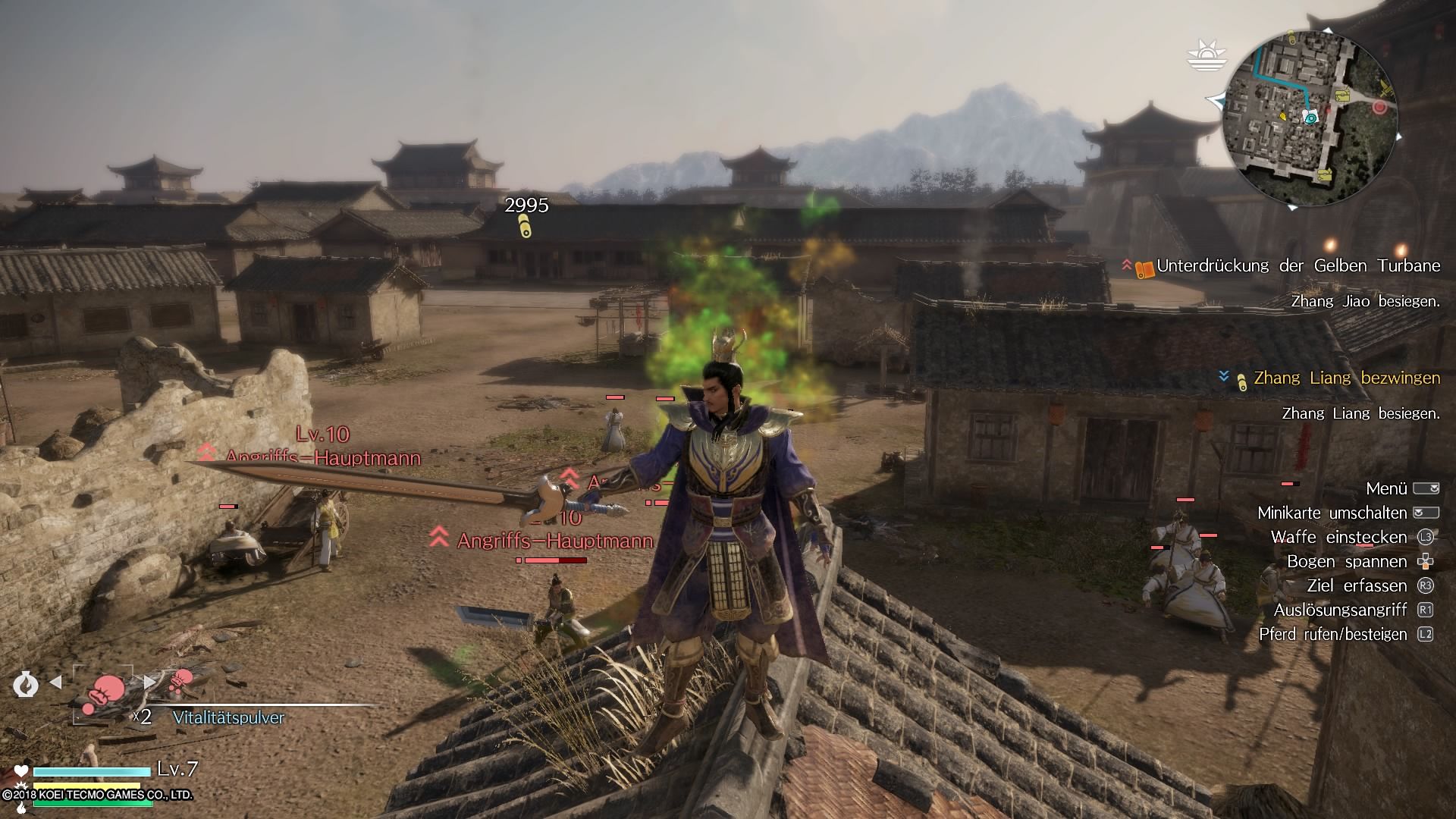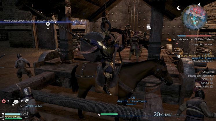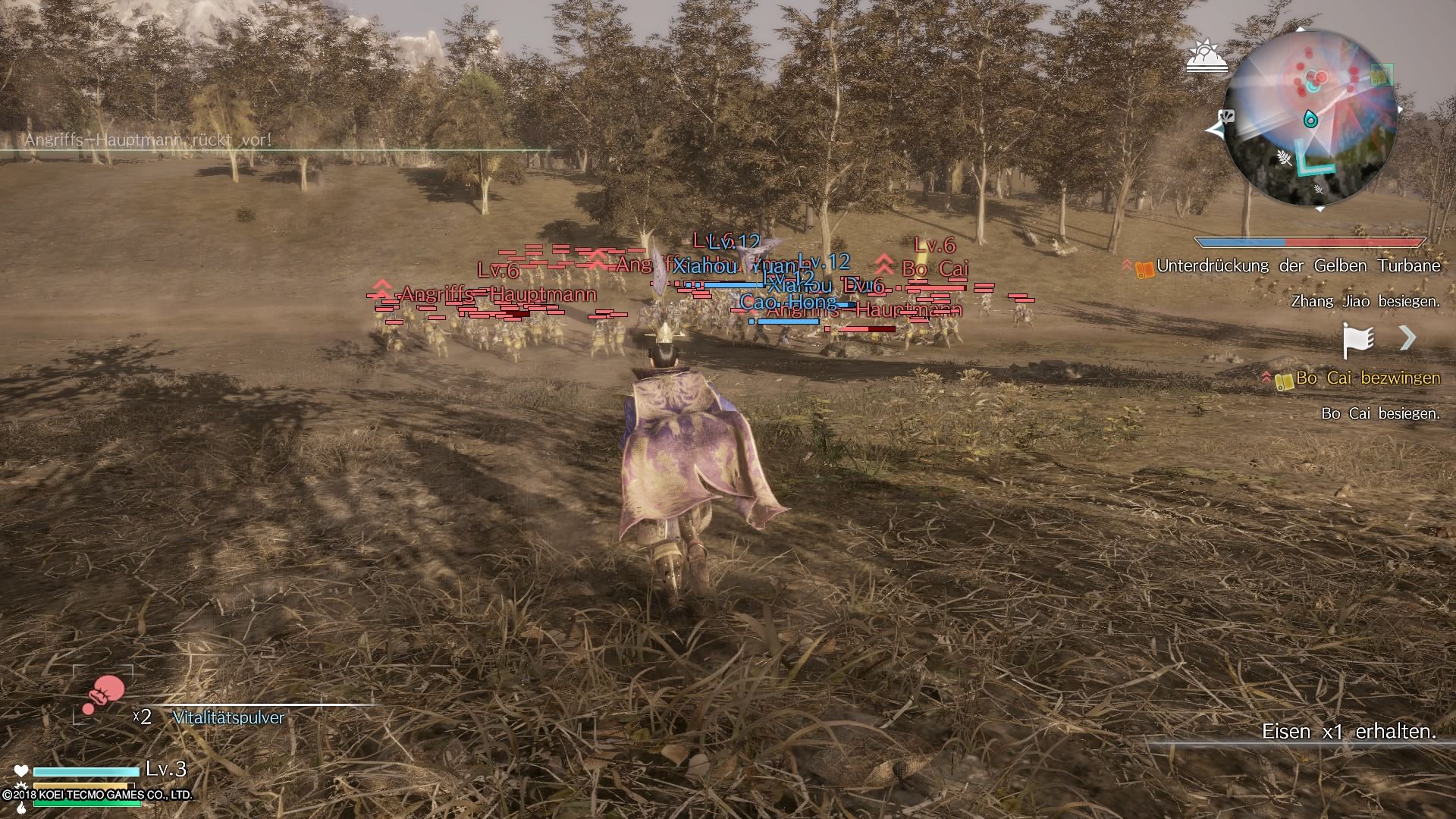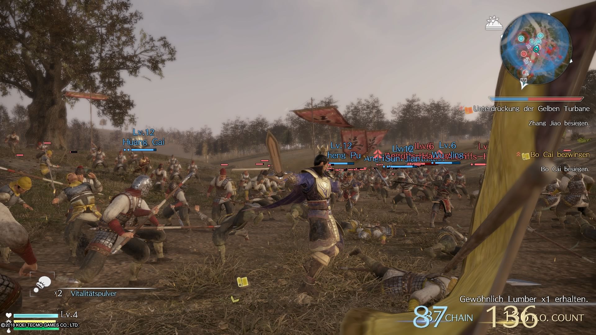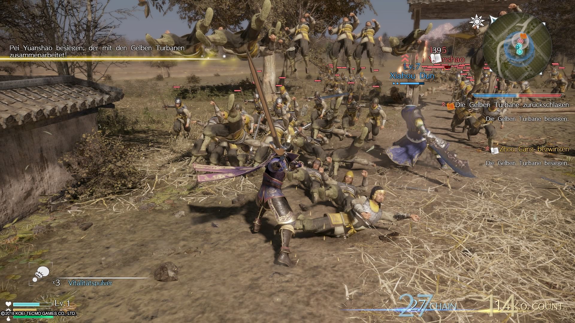 Zusätzlich versuchten die Entwickler durch das neuartige Konzept auch einige spielerische Änderungen vorzunehmen. Erstmal eine Entwarnung für die Fans: im Mittelpunkt stehen nach wie vor die epischen Kämpfe gegen hunderte Gegner, bei denen eure Kill-Counter innerhalb von Minuten in die Höhe schießen. Noch immer greift ihr auf diverse Angriffsmöglichkeiten zurück, die euch mal simplere, mal kompliziertere Kombinationstechniken abverlangen. Ihr befördert Feinde beispielsweise mit Hieben in die Luft oder macht sie für einige Momente bewegungsunfähig und werdet hierbei stets von verbündeten Kriegern unterstützt. Und doch haben sich die Entwickler damit beschäftigt, die etablierte Musou-Action innovativ zu ergänzen. Ihr absolviert zum Beispiel einige Nebenmissionen, geht auf Jagd oder sammelt Rohstoffe. Leider halten sich die narrativen Vorteile der offenen Spielwelt in Grenzen. Nur selten erhalte ich durch Dialoge abseits des Spielgeschehens wirklich interessante Hintergrundinformationen.
