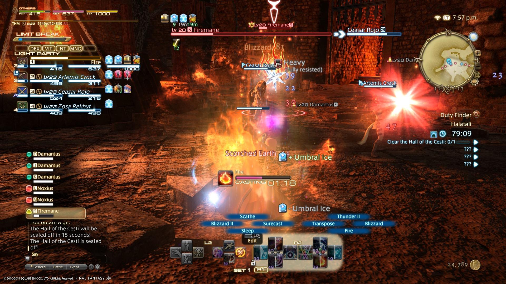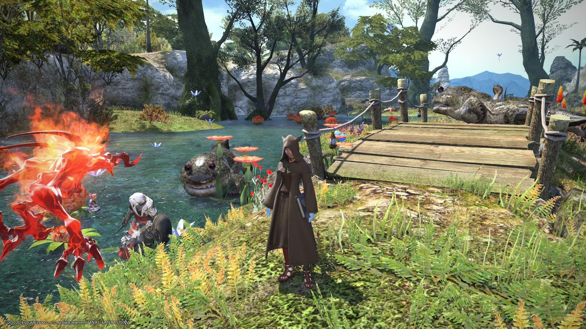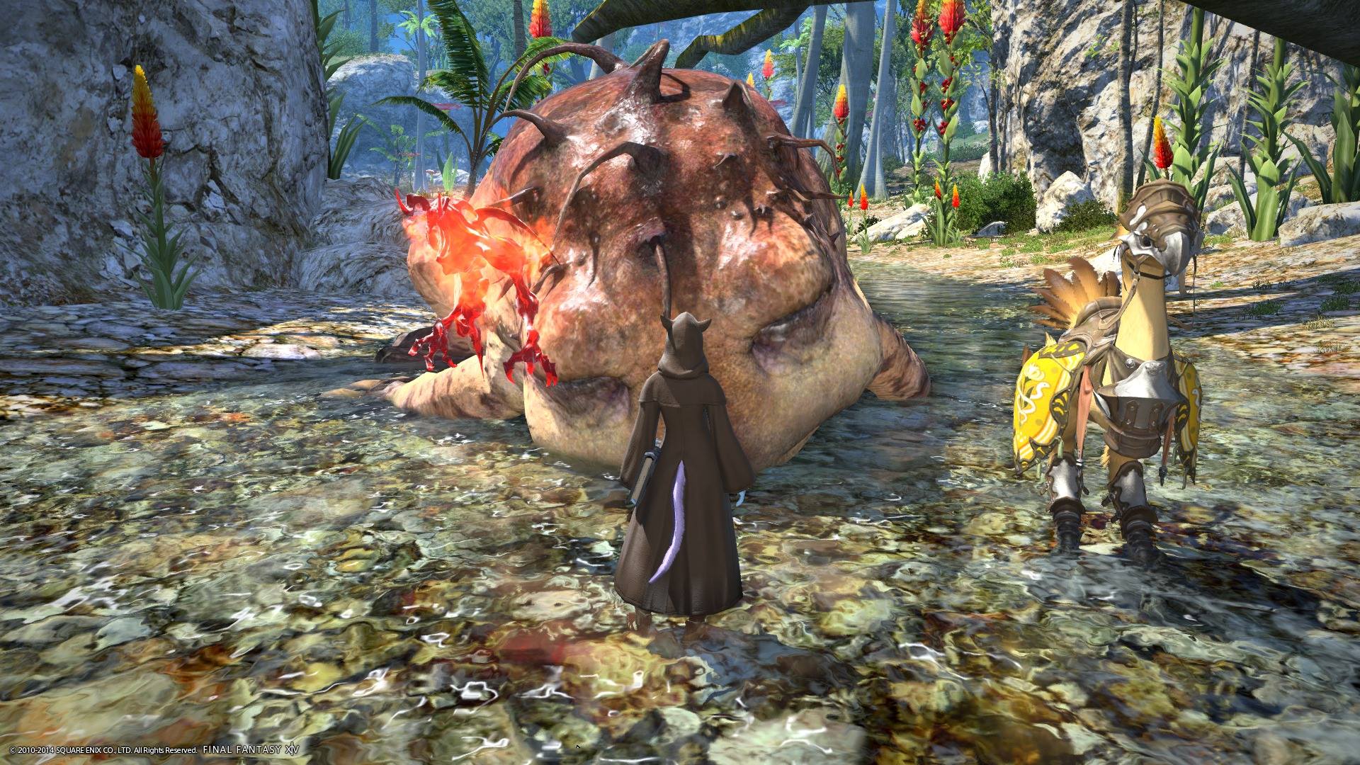 Einen großen Teil unserer Zeit in Eorzea verbringen wir mit der Bekämpfung von feindlichen Kreaturen. Dabei schafft es das Spiel, das Kampfsystem weitaus aktiver zu präsentieren, als es in anderen MMOs üblich ist. Im Kern sieht es das Konzept vor, verschiedene Fähigkeiten anzuwenden, die danach wiederum einige Zeit benötigen, um wieder zur Verfügung zu stehen. Es gilt also, die „Cooldown“-Zeit der Angriffe genau einschätzen zu können. Die Klassen zeichnen sich durch verschiedene Angriffsarten aus, dementsprechend bieten sie auch ein jeweils völlig unterschiedliches Spielgefühl. Es sind typische MMO-Klassen wie Tanks (Figuren, die große Gesundheitsleisten haben und dementsprechend viel einstecken können), Heiler und Nah- sowie Fernkämpfer enthalten. Das bereits angesprochene Job-System ermöglicht es, die Vorteile jeder Klasse in einem Charakter zu vereinen. Je höher man eine Klasse levelt, desto mehr Fähigkeiten kann man in die anderen Klassen mitnehmen. Je mehr Klassen man sich widmet, desto größer ist anschließend die Fülle an Skills, die man in einer einzigen Figur vereinen kann. Dieses Konzept motiviert unglaublich, in jede Klasse viel Zeit zu investieren und belohnt diese Investition im Anschluss gebührend. Es kommt dem Spieler auch entgegen, dass man sich nicht auf eine Klasse wirklich festlegen muss. Ist man beispielsweise gerne als Bogenschütze unterwegs, hätte gerne aber auch die Fähigkeiten eines Heilers, ist dies mit einigen Stunden Arbeit möglich. Wie intensiv man die Klasse des Heilers spielt, macht letztendlich aus, wie viele Fähigkeiten man beim Bogenschützen übernimmt bzw. wie stark diese sind. Diese Freiheit ist die wohl größte spielerische Stärke von Final Fantasy XIV – A Realm Reborn. Das Spiel bietet alles, was ein gutes MMO ausmacht und so stehen dem Spieler natürlich viele Städte, weitläufige Areale zum Erkunden, Dungeons mit gefährlichen Kreaturen, Gilden und auch ein umfangreiches Ausrüstungssystem zur Verfügung. Ein weiteres Feature stellen die Full Action Time Events – kurz FATE genannt – dar. Diese können in der Spielwelt jederzeit auftauchen und konfrontieren uns mit verschiedenen Aufgaben. Diese Missionen reichen vom einfachen Eskortieren bis hin zu Massenschlachten mit starken Gegnern und belohnen die teilnehmenden Spieler mit mehr XP als gewöhnliche Aufträge und selten auch mit besonderen Gegenständen. Die FATEs sind optional, machen aber besonders viel Spaß, da hier viele Spieler bei ein und der selben Aufgabe zusammenarbeiten. Das Spiel präsentiert sich durch und durch als MMO und lässt sich am besten zusammen mit einigen Freunden genießen. Dennoch können auch Einzelgänger die Welt von Eorzea ohne Probleme erkunden, solange eine Internetverbindung besteht.