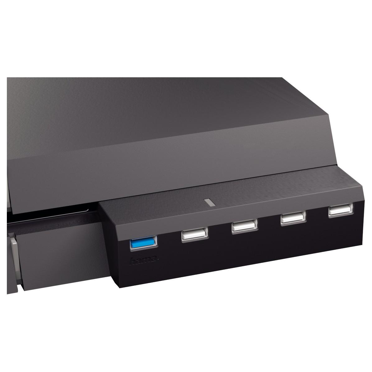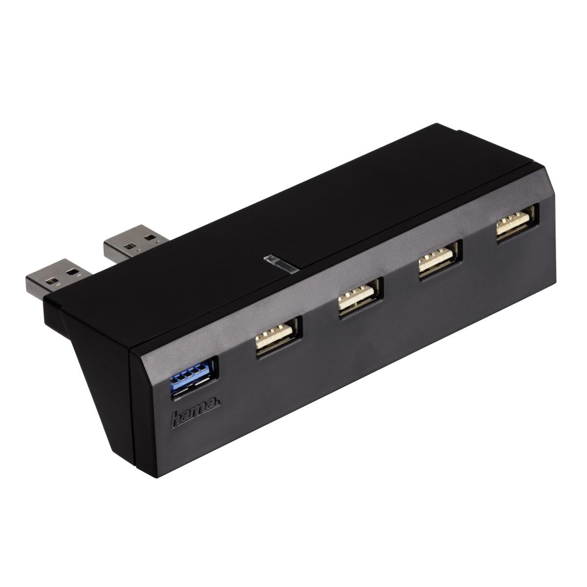 Manchmal sind zwei USB-Anschlüsse einfach zu wenig. Mit dem Hama PS4-USB-Hub stehen ein USB-3.0-Port für eine ultraschnelle Festplatte und vier weitere USB-2.0-Anschlüsse für beispielsweise zwei Mikrofone, ein Lenkrad und einen kabelgebundenen Controller zur Verfügung.