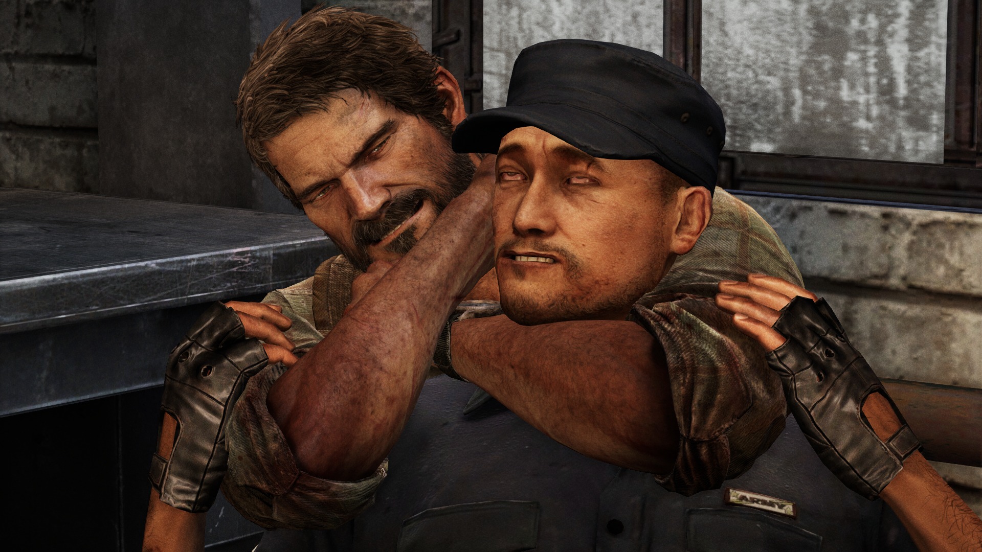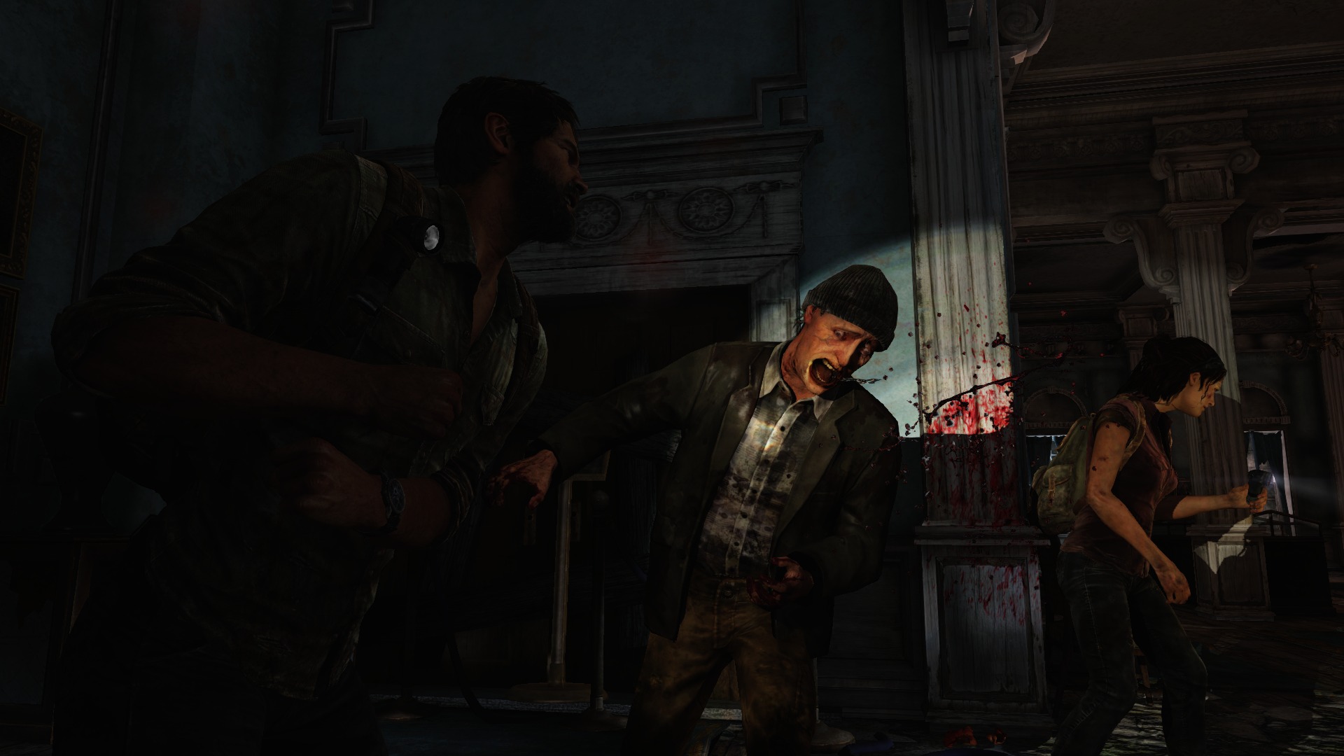 Über die Story will ich gar nicht allzu viele Worte verlieren – ihr werdet es mir danken. Je unwissender ihr euch in das Abenteuer stürzt, desto mehr wird euch die Handlung in den Bann ziehen. Wir übernehmen die Figur des Joels, der in einer postapokalyptischen Welt mit dem jungen Mädel Ellie quer durch Nordamerika reist. Warum? Findet es selbst heraus. Wir finden uns in einer unglaublich atmosphärischen Welt wieder, in der um jeder Ecke eine potentielle Gefahr lungert. Jeder ist auf sich allein gestellt, sowohl hässliche, von Pilzen überwucherte Zombies als auch verzweifelte Überlebende machen uns das Leben schwer. The Last Of Us schafft es mit Leichtigkeit, uns die Hauptcharaktere ans Herz zu legen. Als Spieler sorge ich mich um unsere Protagonisten, fiebere in den Ereignissen unglaublich mit. Naughty Dog hat es geschafft, den Figuren eine überzeugende Darstellung zu verpassen. Joel, Ellie und auch andere Charaktere weisen durchs Spiel hinweg eine Entwicklung auf, was uns nur noch stärker an die Persönlichkeiten bindet. Die Handlung profitiert sehr von der grandiosen Darstellung der Charaktere. The Last Of Us ließ mich wirklich die meiste Zeit meiner Durchgänge auf der Kante des Sofas sitzen, das mich die Ereignisse absolut packten. Die Handlung bietet ein starkes Pacing, sodass mir nach atemberaubenden, packenden Szenen auch mal die Ruhe gegeben wird, das Gezeigte zu verarbeiten. Nach einem unglaublich emotionalen Intro flachen die Geschehnisse erst einmal etwas ab, bevor es nach und nach wieder Fahrt aufnimmt. Wir werden in regelmäßigen Schritten mit wichtigen Infohäppchen versorgt, was für einen guten Spielfluß sorgt und sich in einem überwältigendem Ende gipfelt. The Last Of Us ist emotional, packend, bietet ein interessantes, schlüssiges Apokalypse-Szenario. Geschickt strukturierte Geschehnisse sowie markante Charaktere, die man schnell ins Herz schließt, sorgen für ein Meisterwerk der Erzählkunst. Es ist kein Wunder, dass zum Naughty Dog-Titel ein Hollywood-Blockbuster geplant ist, doch ist dieser überhaupt nötig? Noch nie zuvor hat ein Spiel mich zum Weinen gebracht – The Last Of Us sogar mehrmals. Und zwar immer und immer wieder, auch nachdem ich schon wusste, was da auf mich zukommt. Da brauche ich auch keine Filmumsetzung, denn der narrative Aspekt ist im Videospiel bereits exzellent umgesetzt.