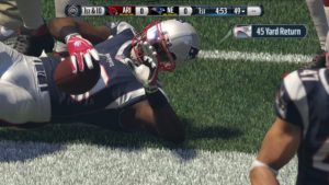 Das Spielgeschehen basiert im Großen und Ganzen auf dem vorherigen Teil. Das ist verständlich, schließlich kann EA das Gameplay nicht jedes Jahr aufs Neue vollkommen umkrempeln und beispielsweise eine neue Engine einführen. Das heißt jedoch nicht, dass sich die beiden Titel identisch spielen. Madden NFL 16 bringt kleine Modifikationen ins Spielgeschehen ein. Allen voran fällt auf, dass das Passen und Empfangen des Footballs nun dynamischer vonstattengeht. In der Rolle des Quarterbacks sind Zuspiele auf verschiedene Weisen möglich. Der neue Teil macht es dem Spieler einfacher denn je, auf die diversen Wurf-Möglichkeiten zurückzugreifen. Per Antippen oder Gedrückthalten sowie durch zusätzliches Drücken von L1 oder L2 werden die Pässe variiert. Lobs, feste „Bullet“-Würfe oder auch tiefe Pässe lassen sich dadurch spontan ausführen. Wird Madden NFL 16 erstmals eingelegt, präsentiert sich nach wenigen Minuten ein Tutorial. Hier können sämtliche Spielfunktionen erlernt werden, ebenso liegt für Kenner ein Tutorial vor, das lediglich die neuen Aspekte präsentiert. Neben dem dynamischen Zuspiel ist ebenso das Empfangen des Spielgeräts eleganter gelöst. Wie beim Pass bieten sich uns zum Fangen verschiedene Möglichkeiten, die wir in der Rolle des Empfängers haben. Durch die Tasten Viereck, Dreieck und Kreis können Spieler noch vor dem Fangen entscheiden, wie sie den heranfliegenden Football angehen wollen. Beim „RAC“ (Run After Catch) versucht der Empfänger, nach dem Fang möglichst auf den Beinen zu bleiben, um im Anschluss noch wichtige Yards hinzulegen. Beim „aggressiven Fang“ geht der Spieler mit viel Risiko zum Ball. Zwar geht das Ei zumeist in die Hände des angepeilten Spielers, doch aufgrund der gewagten Herangehensweise besteht auch die erhöhte Gefahr zur Interception. Beim „Besitz-Fang“ riskiert der Sportler, beim Fangen zu Boden zu gehen. Diese Variante steht im Gegensatz zum Run After Catch und konzentriert sich darauf, Yards abzusichern, selbst wenn durch den Wurf keine große Reichweite gutgemacht wurde. Hier besteht allerdings die erhöhte Gefahr eines Fumbles – dass der balltragende Spieler den Ball fallen lässt. Das Gameplay wurde sowohl in der Offensive als auch in der Defensive in kleinen Nuancen verändert. Die neuen Möglichkeiten machen das Geschehen für den Spieler dynamischer – je nach Situation können wir spontan entscheiden, auf welche Weise wir den Football werfen oder fangen wollen. Spielerisch ist Madden NFL 16 dadurch seinem Vorgänger überlegen.