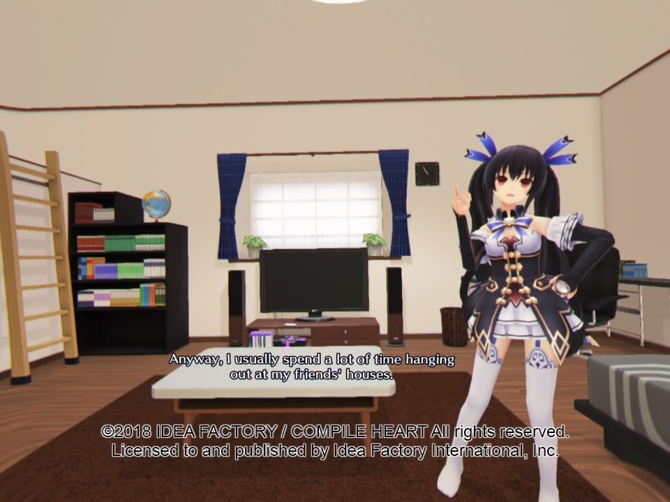 In eurem virtuellen Zimmer startet das Spiel und beginnt das VR Feature einzuleiten. Dieses besteht aus dem Besuch einer der 4 Goddesses („Göttinnen“) im Spiel, die das Reich Gameindustrie mit ihren HDD Formen beschützen und als Protagonisten des Spiels fungieren. Es gibt viele Events der jeweiligen Göttinnen, die ihr im Hauptmenü nach Belieben auswählen könnt. Zu Beginn steht euch ein kurzer Abschnitt einer jeden Goddess zur Verfügung. Die restlichen Events werden nach und nach durch das Spielen der Hauptstory freigeschaltet.