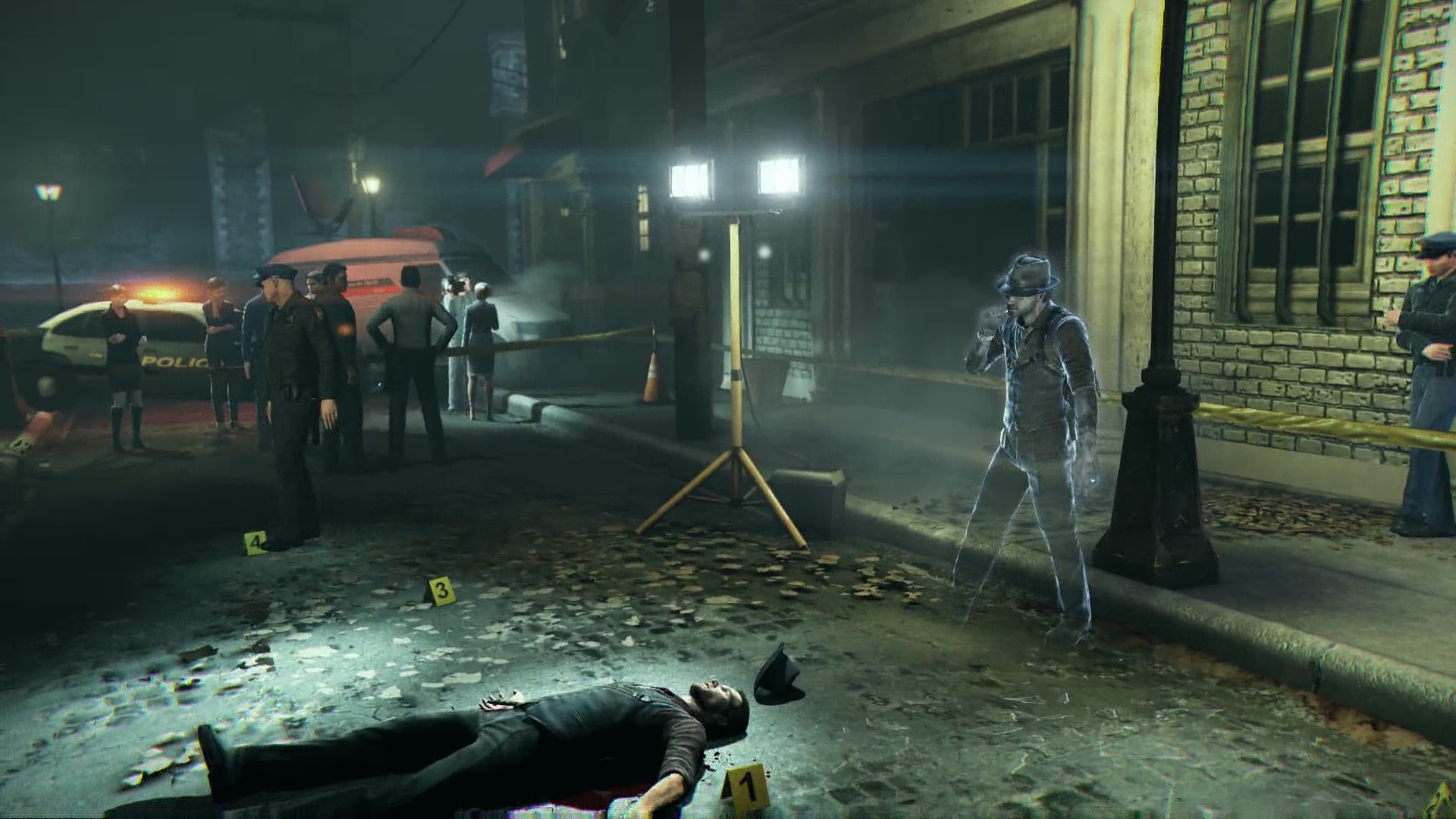 Wir übernehmen die Rolle von Ronan O’Conner, einen tätowierten, hartgesottenen Detektiv aus Salem, Massachusetts. O’Conner ist mit seinen Kollegen auf der Jagd nach dem berüchtigten „Bell Killer“, der schon mehrere Opfer hinterlassen hat und der Polizei immer einen Schritt voraus ist. Unser Protagonist trifft auf den Killer, wird von diesem jedoch aus dem Fenster eines mehrstöckigen Hauses geworfen und in der Luft von sieben Kugeln durchlöchert. Und trotzdem kann sich Ronan nach dem Sturz vom Boden erheben. Allerdings ohne seinen Körper, denn diesen sieht er mausetot vor sich liegen. Fortan ist er innerhalb der Welt der Lebenden als eine Art Geist gefangen und hat seine Zukunft selbst in der Hand. Er hat noch eine unerledigte Angelegenheit zu klären: Er muss seinen eigenen Mord aufklären und Gerechtigkeit in den Fall des Glocken-Killers bringen. Schon bald trifft er auf andere geistähnliche Erscheinungen und ebenso macht er Bekanntschaft mit der frühreifen Punker-Göre Joy, die sich ihm als widerwilliges Medium für das Reich der Verstorbenen offenbart. Sie hat Ronans Tod miterlebt und kann ihm helfen, sich an seine neuen Umstände anzupassen, allerdings nicht ohne Gegenleistung. Joy ist auf der Suche nach ihrer verschollenen Mutter, sodass Ronan sich dazu bereiterklärt, ihr bei der Suche zu helfen. Die Handlung ist recht solide und hat ihre Höhe- und Tiefpunkte. Besonders die Erfüllung typischer Stereotypen der Kategorie „übernatürlich“ fällt eher negativ auf. Dennoch bietet sich uns eine insgesamt stimmige Welt voller Geheimnisse und interessanter Infos. Auch die Beziehung der Hauptcharaktere fällt überzeugend aus. Zwar harmonieren Ronan und Joy als Figuren nicht auf dem Qualitätsniveau von Joel und Ellie aus The Last of Us, doch wird uns die wachsende Bindung relativ glaubhaft präsentiert, da die beiden ziemlich voneinander abhängen. Uns bietet sich ein robustes Storygerüst, das sich auch durch kleinere Ungereimtheiten nicht allzu sehr aus der Ruhe bringen lässt. Die Handlung verläuft interessant und spannend, sodass man gern bis zum Ende hin dabei ist, was leider aber ohne Probleme in weniger als 8 Stunden erreicht sein sollte.
