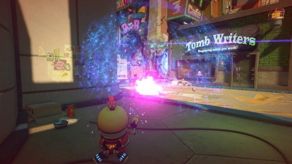 Während sich am tollen Spielgeschehen nichts geändert hat und sowohl Solospieler-Inhalt als auch Figurenaufgebot erweitert wurden, gibt es im Multiplayer-Umfang eine nicht ganz so schöne Nachricht zu vermelden: Der Modus Taco Banditen, der sich als spaßige Capture The Flag-Variante präsentierte, ist nicht mehr enthalten. Stattdessen sind andere Spielmodi enthalten, sodass sich der Umfang dennoch sehen lassen kann. Team-Sieg und Sieg bestätigt sind klassische Team-Deathmatch-Modi. Auch das Konzept von Surburbination dürfte bekannt sein, so ähnelt es mit seinen drei Kontrollpunkten doch stark einer Domination-Spielvariante. Gartenzwerg-Bombe kehrt zum Glück zurück, denn auch hier hatte ich großen Spaß im ersten Teil. Eine Gnom-Bombe wartet in den Arealen, die zur Zerstörung von drei Punkten auf der Map genutzt werden muss. Rasenübernahme präsentiert sich als Neuheit. Hier teilen sich die Teams auf Angreifer und Verteidiger auf. Die Angreifer müssen einen Punkt auf der Karte erobern, was die Verteidiger zu verhindern versuchen. Ist ein Punkt erobert, eröffnet sich ein neues Stück der Umgebung mit einem neuen Kontrollpunkt. Werden alle Punkte erobert, gewinnen die Angreifer. Schaffen sie dies nicht in der vorgegebenen Zeit, gehen die Verteidiger als Sieger vom Platz. Da die Leiste der Kontrollübernahme sich nur füllen, nicht aber durch erfolgreiche Verteidigung wieder leeren kann, spielen sich die Partien allerdings keineswegs unfair – obwohl sich die Angreifer durchaus für einen Sieg anstrengen müssen. Ich hatte Spaß an allen Modi und habe mich dementsprechend über eine gemischte Playlist gefreut, in der alle Spielvarianten rotiert werden. Mit gutem Matchmaking und solidem Netzcode ist der Online-Multiplayer einmal mehr ein toller Zeitvertreib.