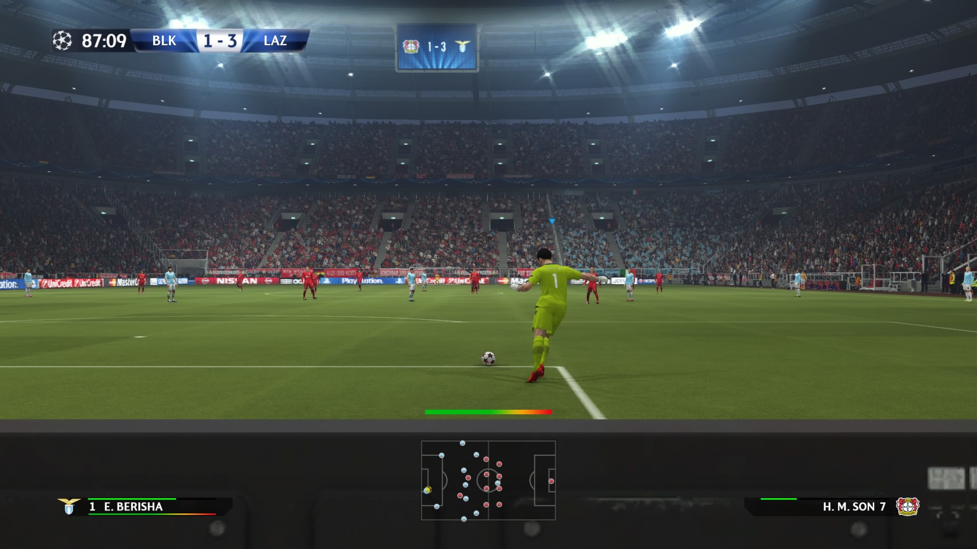 Zuallererst fällt auf, dass die Entwickler vom PES Team ihren Stolz ablegten und sich an einigen positiven Punkten von FIFA orientierten. Das fängt bei den eleganten, bunten, Kachel-artigen Menüpunkten an, die sich deutlich übersichtlicher als die statischen Rechteckvarianten der Vorgänger präsentieren. Der Inhalt des Spiels ist sofort klar und jeder Unterpunkt lässt sich einfach und schnell auswählen. Ein weiterer Einfluss stellt die Implementierung eines Erfahrungssystems dar. Für diverse Manöver auf dem Feld und unterschiedliche Meilensteine werden GP verteilt, die wiederum im MyClub-Modus ausgegeben werden können. Hier bietet uns sich quasi das Gegenstück zu FIFAs Ultimate Team: Es gilt, ein Team zusammenzustellen, das durch GP und auch Echtgeld mit neuen Spielern erweitert werden kann. Ich empfand, dass die PES-Umsetzung sehr stark auf Chemie setzt und daher bei der Zusammenstellung vermehrt darauf geachtet werden muss, dass jeder Spieler mit jedem gut aus kommt. Ist der Trainer der richtige für die Team-Chemie? Macht es Sinn, einen technisch starken Spieler einzusetzen, der sich im aktuellen Kader aber unwohl fühlen würde? Diese Aspekte dämmen den Vorteil von zahlenden Spielern etwas ein. Der seltene Star mit hoher Bewertung, gekauft durch Echtgeld, kann zumeist nicht einfach in ein bestehendes Team gesetzt werden und sofort funktionieren. Vielmehr muss ich ein Team mit passender Chemie um diesen Spieler herum basteln, was erneut viel Zeit und GP/Geld erfordert. Ganz ausschließen wird man das Pay2Win-Konzept damit wohl nicht können, doch hatte ich auch als Nutzer der verdienten GP großen Spaß mit dem Modus. Die restlichen Modi sind Standardkost der PES-Serie: Die gewöhnlichen Ligen, Turniere und Wettbewerbe inklusive Champions League, Master League – dem klassischen Manager-Modus -, Schnellspiele und Onlinespiele sind vorhanden. Wer in den stabil laufenden Online-Partien regelmäßig den Hintern versohlt bekommt, kann sich im Trainingsmodus austoben, Freistöße, Ecken und Spielzüge üben. Hinsichtlich des Umfangs und Inhalts ist der diesjährige Ableger wahrlich stark. Auf die solide Basis der Vorgänger wurde mit dem spaßigen MyClub-Modus aufgebaut. Präsentiert wird der Inhalt diesmal übersichtlicher denn je – Lektion gelernt.