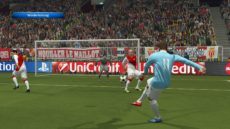 Das PES Team hat im letzten Jahr den Wechsel zur FOX Engine vollzogen, der nun erstmals richtig zur Geltung kommt. Wir erleben ein temporeiches, intelligentes Fußballspiel, das sich insbesondere durch die Feinheit der Spieleranimationen auszeichnet. Die Art und Weise, wie ein Spieler mit dem Fuß zum Ball geht, wie sich ein Stürmer im Zweikampf gegen einen Abwehrspieler behauptet oder wie der Torwart im letzten Moment noch die Hand hinter der Ball bekommt, lässt das Spielgeschehen lebendig werden. Bestimmte Weltklasse-Spieler sind sofort durch ihre Bewegungsart erkennbar. Diese subtilen Feinheiten tragen zu einem spaßigeren Erlebnis bei. Die Spielerkontrolle fühlt sich natürlich an und ist weniger an Animationen gekettet, fühlt sich freier an. Spiele ich einen schlechten Pass oder setze einen Schuss total in den Sand, habe ich zumeist das Gefühl, dass ich auch schuld daran bin. Sprinte ich bei Höchstgeschwindigkeit und habe einen hüpfenden Ball vor mir, wenn ich zum Schuss ansetze? Dann geht er vermutlich daneben. Abbremsen, den Ball unter Kontrolle bringen und dann schießen? Der Schuss geht vermutlich aufs Tor, aber kann ich dadurch auch genug Kraft hinter den Ball bekommen? Es gibt etliche Varianten, wie der Ball sich beim Schuss verhalten kann, wodurch kein Versuch dem anderen gleicht. Die Skill-Manöver fühlen sich weder gekünstelt noch übertrieben an, sind auch nicht kompliziert auszuüben. PES 2015 spielt sich abwechslungsreich, sodass ich mich dabei ertappte, immer mindestens eine Partie mehr zu spielen, als ich eigentlich plante.