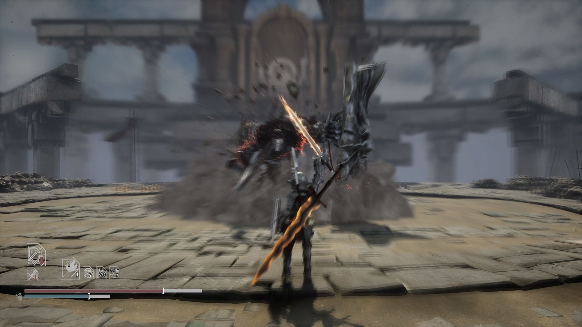 Das Kampfsystem selbst erinnert stark an das Vorbild, ist aber nicht so träge wie ein Dark Souls Ableger. Die Hiebe, das Blocken oder die Ausweichrolle gehen schneller vonstatten und ähneln somit eher an ein Bloodborne, was dem Spiel sicherlich guttut.