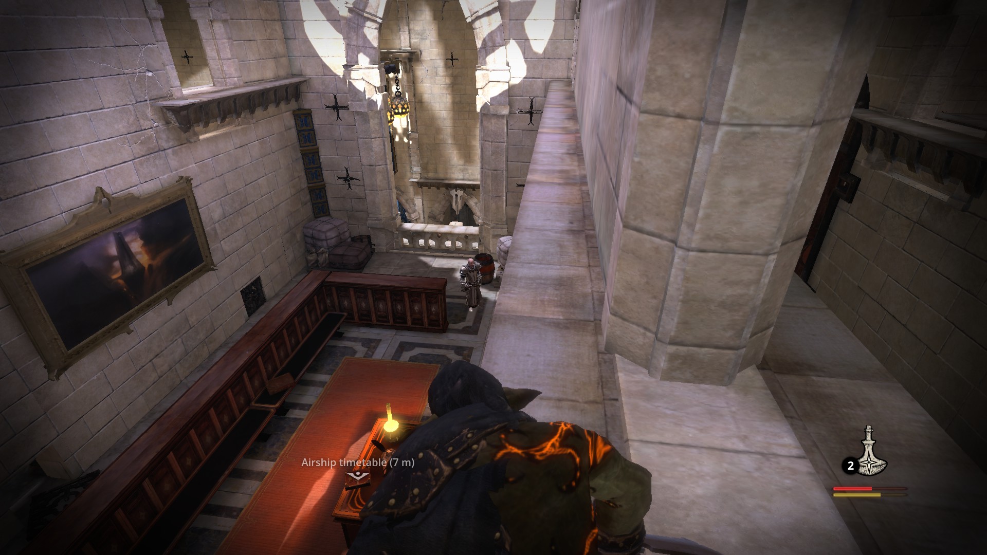 Es ist das Gameplay, bei dem Styx positiv überrascht. Das Spiel hat durchaus intelligente Stealth-Mechaniken, durch die man tatsächlich den gesamten Durchgang über schleichen kann und das auch gerne macht. Styx legt nur einen ganz kleinen Fokus auf das Ausschalten von Gegnern, während es in Metal Gear und Konsorten deutlich häufiger zu solchen Action-Szenen kommt. Wenn ihr allerdings einmal einen Gegner ausschalten wollt, wird dringend zum Stealth-Kill geraten. Hier hat Styx mehrere Möglichkeiten und kann beispielsweise von oben auf einen Feind springen. In den offenen Kampf zu gehen ist allerdings eine schlechte Idee. Zwar bietet das Spiel auch ein Kampfsystem, doch ist dieses wirklich nicht gelungen gestaltet. Styx muss dabei mehrmals die Angriffe seiner Gegner abblocken, bevor er selbst zum tödlichen Konter ansetzen kann. Blöd nur, dass das Blocken unglaublich genaues Timing erfordert und wir kaum ein Hilfssignal bekommen, das und den richtigen Zeitpunkt mitteilt. Zusätzlich kann Styx den Attacken ausweichen, doch ist dieses Manöver lediglich verteidigender Natur, es lohnt sich nicht wirklich. Es brauch nicht viele Treffer der Gegner, bis unser Protagonist das Zeitliche segnet. Auf dem höchsten Schwierigkeitsgrad benötigen die Feinde sogar nur einen Treffer, wodurch man sich gern aus dem offenen Gefecht heraushält. Das Kampfsystem ist fast schon dermaßen unfair und zugleich repetitiv ausgefallen, dass wir zu Stealth-Vorgehen gezwungen werden.