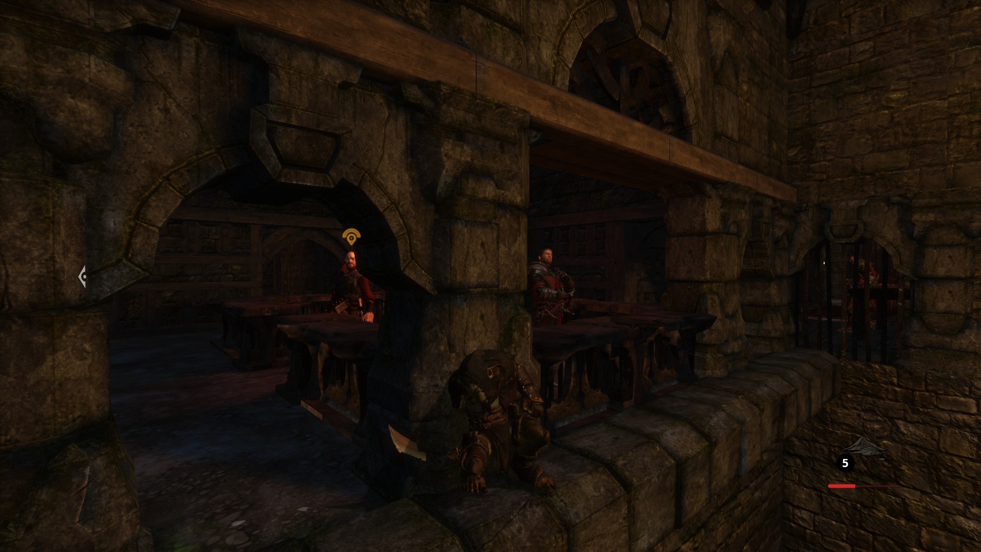 Styx: Master of Shadows erzählt die Geschichte vom namensgebenden Protagonisten, dem Goblin Styx. Er hat seine Erinnerung verloren und geht nun auf Reise, um sie wiederzufinden. Er macht sich das Herz des magischen Weltenbaums zum Ziel, von dem er sich nicht nur die Entdeckung seiner Erinnerungen erhofft, sondern auch mehr über seinen Ursprung erfahren will – scheinbar ist Styx nämlich der erste Goblin der Welt. Grundsätzlich handelt das Spiel also vom Plan des Hauptcharakters, dieses magische Artefakt zu klauen. Blöd nur, dass der Weltenbaum durch eine mächtige Allianz aus Menschen und Elfen geschützt wird… Auch wenn der Ausgang der Story recht passabel klingt, haben es die Entwickler von Cyanide Studios verbockt, die Handlung auch entsprechend umzusetzen. Styx wird uns wahnsinnig quengelig präsentiert und jammert ständig, dass sein Kopf wehtut und dass er sich an dies und jenes nicht mehr erinnern kann. Die Thematik des Gedankenverlusts ist nervig umgesetzt. Zum Glück weiß das Spiel diesen störenden Aspekt mit einer gehörigen Portion Humor wiedergutzumachen. Wenn Styx einmal nicht nörgelt, lässt er den ein oder anderen lustigen Spruch los. Ich weiß nicht, ob das beabsichtigt ist, aber die Sprecher der vielen Nebencharaktere haben fast alle eine piepsige Stimme und sprechen, als seien sie in einer Kindershow engagiert. Das sorgt für viele komische Momente, doch ob die auch wirklich alle so ulkig rüber kommen sollten? Unterhaltsam ist es allemal. Leider bieten die meisten Figuren nicht mehr als eine witzige Stimme. Die Charaktere bleiben blass und sind genauso klischeehaft gestaltet wie Styx Enthüllungen über seinen Ursprung. Was abseits der unterhaltsamen, aber unnötigen Konversationen übrig bleibt, ist eine schlecht umgesetzte Handlung, die in einigen Momenten schlichtweg nerven kann. Hier kann der inhaltliche Vorgänger von Of Orcs and Men wirklich nicht auftrumpfen.