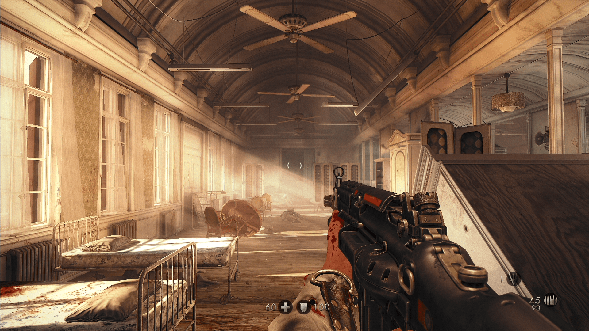 Wolfenstein: The New Order greift die bereits genannte Ausgangslage als alternative Geschichte auf. Doch bevor die Story an die Ereignisse anknüpfen kann, werden wir mit B.J. Blazkowicz in einen ausführlichen Prolog versetzt. Im Jahre 1946 greifen wir mit ihm eine Nazi-Festung an, was sich über mehr als eine Stunde erstreckt und hauptsächlich dazu dient, uns die Steuerung und das Konzept näher zu bringen. Der Angriff entpuppt sich als großer Fehler, da das Team von Blazkowicz gefangen wird und auch nicht mehr vollzählig entkommen kann. Der Hauptcharakter erleidet schwere Verletzungen und wird für eine lange Genesungszeit unter die Obhut der Krankenschwester Anya gebracht. Ganze 14 Jahre dauert Blazkowicz Erholung an, während der regelmäßig Nazi-Gruppierungen im Krankenhaus erscheinen, für Terror sorgen und Patienten für ihre perfiden Experimente mitnehmen. B.J. muss aufgrund seines Zustands tatenlos zusehen, bis die Nazis einen größeren Angriff starten. Blazkowicz ist endlich bereit, sich gegen die Widerwärtigkeiten zu wehren, seinen Rachefeldzug zu starten. Hier, im Jahre 1960, fängt erst die eigentliche Handlung an, die an die eingangs dargestellte Situation anknüpft. Überraschenderweise bietet uns sich eine solide Story, was bei einem Shooter heutzutage keine Selbstverständlichkeit ist. Es gibt allerdings einige Momente, die an einen klischeehaften B-Movie erinnern. Einige Dialoge sorgen eher unfreiwillig für Lacher, was der Handlung aber nicht schadet. Inmitten all der Gewalt der Nazis, die entsprechend grausam dargestellt werden, sind die kitschigen Momente eine nette Abwechslung. Die ernsten Töne kommen durch eine bildgewaltige Darstellung zustande, zu denen auch unser Hauptcharakter Blazkowicz beiträgt. Während er in den vorherigen Spielen als eindimensionale Killermaschine dargestellt wurde, wird ihm in The New Order mehr Persönlichkeit zugeschrieben. Wir stehen ihm zur Seite, wenn er sich den neuen Umständen nach seiner langen Koma-Phase anpassen muss. Doch nicht nur die Figur des Blazkowicz wird näher beleuchtet, auch andere Charaktere erhalten wichtige Szenen. Leider sind die meisten Nebencharaktere allerdings dermaßen in den Hintergrund gedrängt, dass keine Figur wirklich heraussticht und mir im Kopf geblieben ist. The New Order bietet eine interessante Ausgangslage, die eine bedrückte Stimmung mit sich bringt. Uns wird hier keine Oscar reife Darbietung geboten, allerdings sticht der neue Wolfenstein Titel mit einer soliden Handlung und einem gut durchleuchteten Protagonisten aus dem Shooter-Standard heraus.