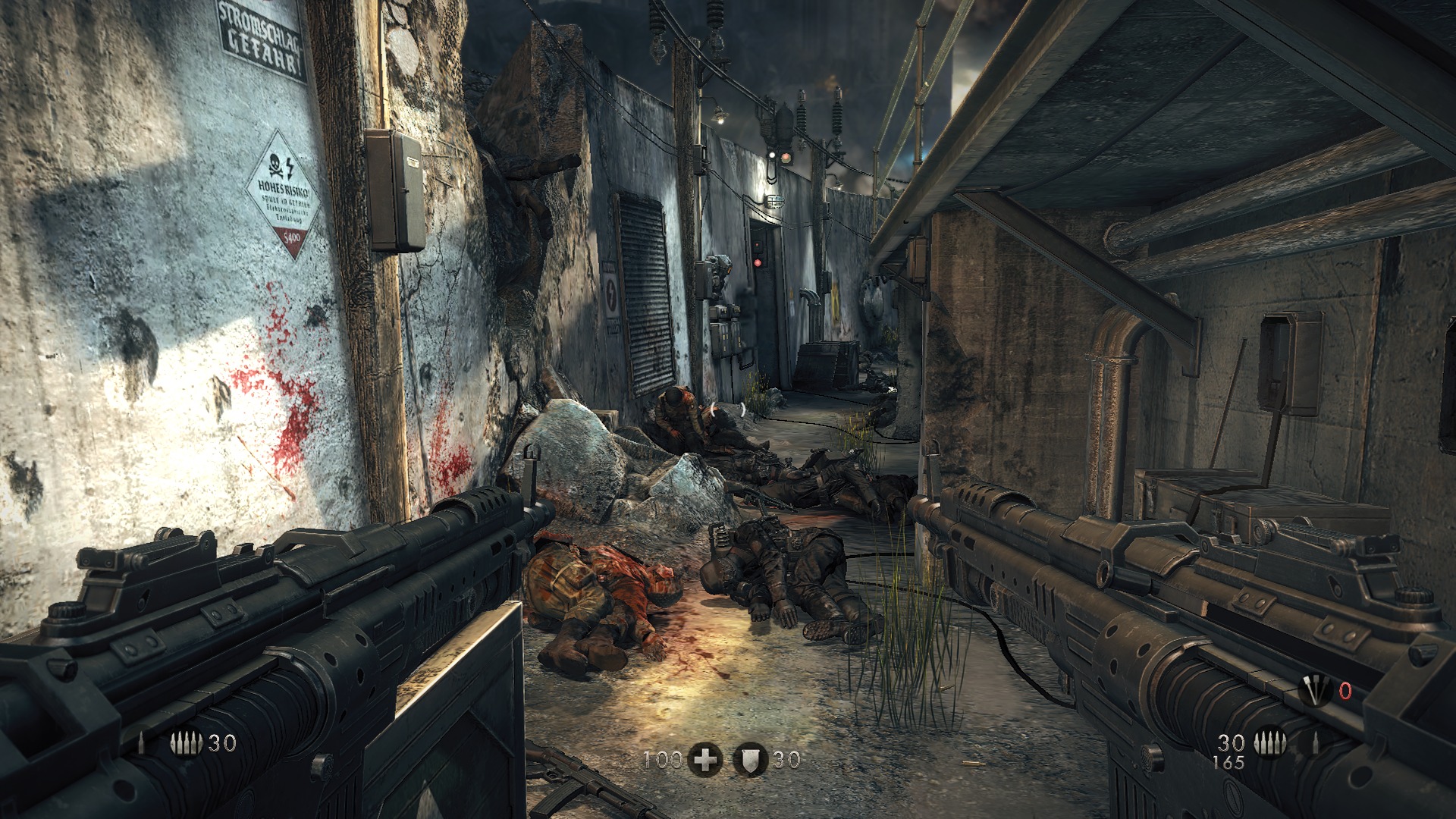 Der Prolog führt die Spieler nicht nur in die Handlung ein, sondern auch in das Spielgeschehen. Dennoch wartet die Einführung mit einem Gefühl von „Old School“ auf uns, was sich im Rest des Spiels nur bedingt wieder zeigt. Zu Beginn sind wir hauptsächlich in engen Korridoren unterwegs und arbeiten uns in schlauchartigen Gängen voran. Nachdem wir das Ausmaß der Story erfahren und im 1960er Abschnitt landen, nimmt das Geschehen allerdings andere Formen an. Wir werden zwar nicht durch eine offene Welt begrüßt, die Spielareale sind weiterhin begrenzt. Allerdings sind die verschiedenen Wege zu größeren Levels verbunden, die es erlauben, Missionsziele auf unterschiedliche Weise anzugehen. Uns wird eine gehörige Portion Freiheit in unserer Vorgehensweise gewährt, was dem Spielgeschehen definitiv gut tut. Dieser Aspekt führt zu einem weiteren Element, das in Shootern mittlerweile nicht mehr unüblich, allerdings meist gern gesehen ist – Stealth. Wolfenstein ist natürlich bekannt für chaotische Ballerorgien, wie lässt sich da eine vorsichtige Spielweise belohnen? In vielen Bereichen des Spiels sind Kommandanten platziert, die mit Wissen über alle Sammelobjekte der Umgebung bespickt sind. Gelingt es uns, solch einen Kommandanten unentdeckt aus dem Verkehr zu ziehen, eignen wir uns dieses Wissen an und können auf Sammlerjagd gehen. Werden wir allerdings entdeckt, rufen die Befehlshaber sofort Verstärkung, sodass Unmengen an Nazis auf uns gehetzt werden. Dieses Element ist eine nette Ergänzung zur Balleraction und lässt sich durch die gut gestalteten Areale gut ausleben. Schade allerdings, dass die Gegner-KI die Spannung der Stealth-Einlagen etwas dämpft. Die Nazis wirken etwas kurzsichtig und nicht allzu aufmerksam, was die Stealth-Möglichkeiten abschwächt. Die Feinde gehen stupide ihren Patroullie-Routen nach, sind somit sehr leicht zu durchschauen, sie verhalten sich selten unerwartet. Anstatt uns in der Hitze des Gefechts zu flankieren, warten sie lieber hinter ihrer Deckung und zeigen regelmäßig ihre Köpfe, die wir ohne Probleme mit unseren Waffen ins Visier nehmen können. Auf einem hohen Schwierigkeitsgrad beißt man natürlich schnell ins Gras, wenn man unüberlegt ins Gefecht rennt und 6-7 Nazis gegenübersteht. Mit ein wenig Vorsicht im Vorgehen sind allerdings alle Hürden zu meistern – teilweise etwas zu einfach. Das ändert allerdings nichts an der Tatsache, dass die Ballerei in Wolfenstein: The New Order einfach nur Spaß macht. Der Umgang mit den Waffen ist mitunter die größte Stärke des Spiels. Es war noch nie befriedigender, den virtuellen Nazis mit zwei Schrotflinten gleichzeitig die Köpfe wegzupusten. Es macht jedes Mal aufs Neue Spaß, sich so richtig mit den mächtigen Waffen auszutoben. Die Möglichkeit des Akimbo-Stils, also mit beiden Händern je eine Waffe zu bedienen – nicht nur mit der rechten, wie es seit jeher der Standard im Shooter-Genre war – trägt umso mehr zum unbekümmerten Spaß bei. Wolfenstein zeichnet sich durch diese stupiden, aber eben doch durchaus spaßigen Schusswechsel aus. The New Order bedient sich diverser Eigenheiten, die in moderneren Shootern schon länger nicht mehr zum Einsatz kommen. Hier müssen die Munition und die Gesundheitspakete mühselig manuell aufgehoben werden. Auch wenn sich das etwas altbacken anfühlt, spiegelt sich dadurch die lange Vergangenheit und Tradition der Wolfenstein Serie aus. Es mag in der Tat etwas nervig sein, immer direkt über der einzusammelnden Munition stehen zu müssen und diese dann per Knopfdruck einzustecken. Dennoch ist das ein Aspekt, an dem man sich während dem Durchgang gewöhnt und nicht wirklich etwas vom Spielspaß wegnimmt. Weiterhin in der Gegend versteckt sind diverse Sammlerobjekte, die sich aus Tonaufzeichnungen, Unterlagen, Schätzen und rätselhaften Codes, die insgesamt vier neue Spielmodi freischalten, zusammensetzen. Noch dazu gibt es jede Menge Waffenaufrüstungen freizuschalten. Dies wird allerdings nicht über typische Sammelarbeiten erledigt, sondern durch das Erreichen verschiedener Herausforderungen der entsprechenden Waffen. Darin steckt der hauptsächliche Wiederspielwert des Spiels. Neben Upgrades und freischaltbaren Modi ist nämlich keine Multiplayerkomponente mit dabei. In einem Shooter ist dies durchaus ungewöhnlich, allerdings ist uns diese Entscheidung lieber, als einen belanglosen Multiplayer vorgesetzt zu bekommen. Ein Durchgang der Story verschlingt etwa 15 Stunden eurer Zeit, was einen soliden Umfang ausmacht. Andere Titel liefern natürlich weitaus mehr Spielstunden für das Geld, daher sollte jeder für sich ausmachen, ob eine annehmbare Spieldauer, eine solide Handlung und stupide, aber wahnsinnig spaßige Ballerei den Vollpreis wert ist.