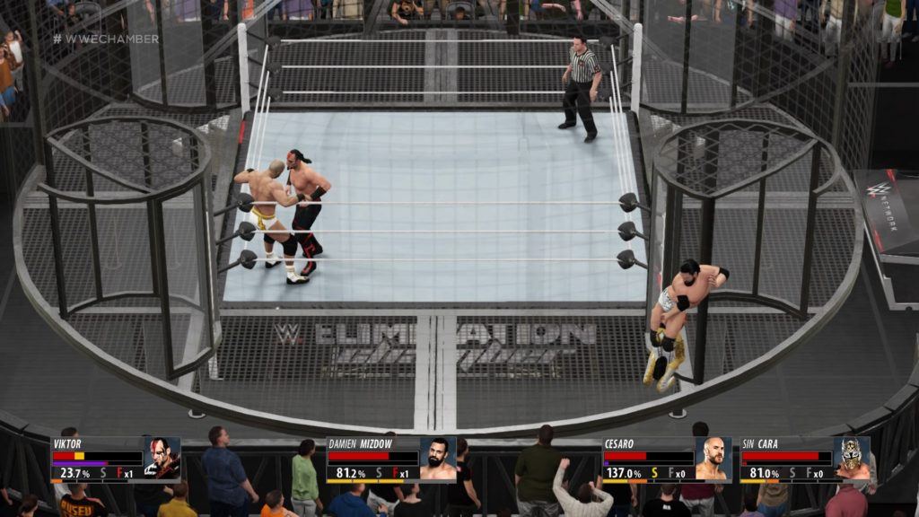 Was der Vorgänger durchaus richtig gemacht hat, war der Versuch, das Kampfsystem in einem realistischeren Gewand zu präsentieren. Zeichneten sich vorherige Teile hauptsächlich durch eine leicht zu erlernende Arcade-Spielweise aus, brachte 2K15 komplexere Mechaniken ein. Die Idee ist gut, die Umsetzung war es weniger. Einige Aspekte waren nicht gut durchdacht, ließen sich ausnutzen und machten das Spielgeschehen eintönig. 2K16 geht nun ebenfalls in die taktische Ausrichtung und legt nach wie vor große Betonung auf Ausdauer und Erschöpfung. Konnten Reversals bzw. Konter im Vorgänger jedoch noch unendlich oft eingesetzt werden, kommt hier zugunsten des Balancings eine Limitierung zum Einsatz. Die Reversals stehen nur gelegentlich zur Verfügung – werden sie aufgebraucht, laden sie sich erst mit der Zeit wieder auf. Dadurch muss jeder Spieler seine Möglichkeit zum Reversal strategisch verwalten, was bereits den ersten großen Kritikpunkt am Vorgänger ausmerzt. Die Überarbeitung der Working Holds ist ebenfalls willkommen. Im Wrestling werden diese Umklammerung genutzt, um sich kurzzeitig zu erholen. Auch hier wird durch ein Working Hold die Ausdauer und der Zugang zu Reversals aufgefrischt. Zudem lassen sich viele theatralische Elemente strategisch nutzen. So kann zum Beispiel der eigene Manager kurzzeitig für Ablenkung sorgen, was in 2K16 strategisch abgestimmt zum Sieg verhelfen kann. Das Geschehen verlagert sich immer mehr Richtung Realismus und Taktik, was auch in kleineren Mechaniken gut zum Zuge kommt. Was mir hingegen weniger gefallen hat, ist das Submission-System. Die Entwickler wollten hier Button-Mashing um jeden Preis verhindern und haben stattdessen ein kompliziertes Minispiel implementiert, das zu keinem Zeitpunkt vollends erklärt wird und mich somit frustrierte. Auch bedarf die KI noch etwas Arbeit, denn die Leistungen der computergesteuerten Wrestler ist sehr inkonsistent. Steife Animationen tragen ebenfalls dazu bei, dass das Spielgeschehen noch nicht ganz rund wirkt. WWE 2K16 hält definitiv viele spaßige Matches bereit und geht in die richtige Richtung. Doch zeigt der neue Teil auch, dass am Spielgeschehen noch weiter gefeilt werden muss.